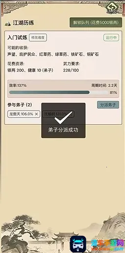 1. 派遣内门弟子外出闯荡,有机会带回银两、稀缺材料、武学残篇等丰厚奖励,助力门派跃升。