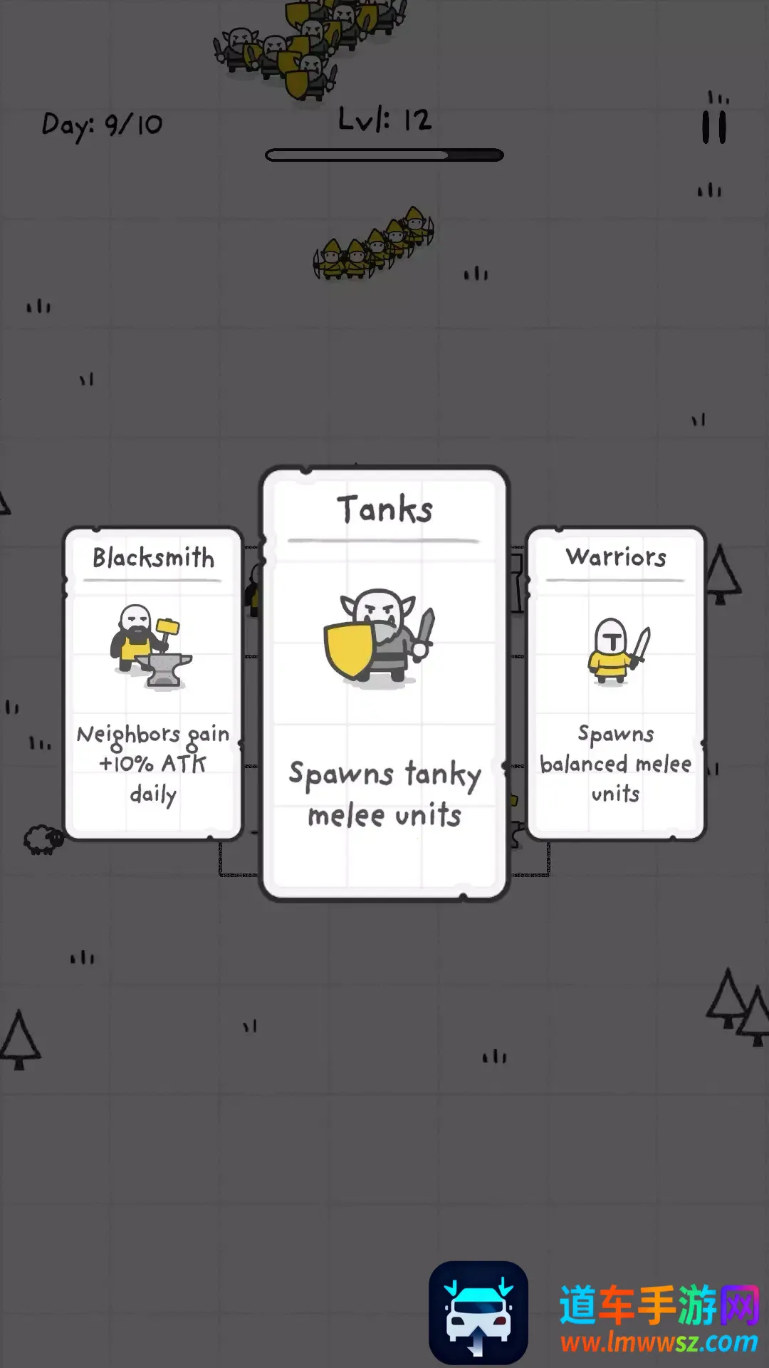 1. 独特升级系统:每波敌人过后可从三张卡牌中选一张,强化现有单位或解锁新单位,让每次游戏都独具特色。