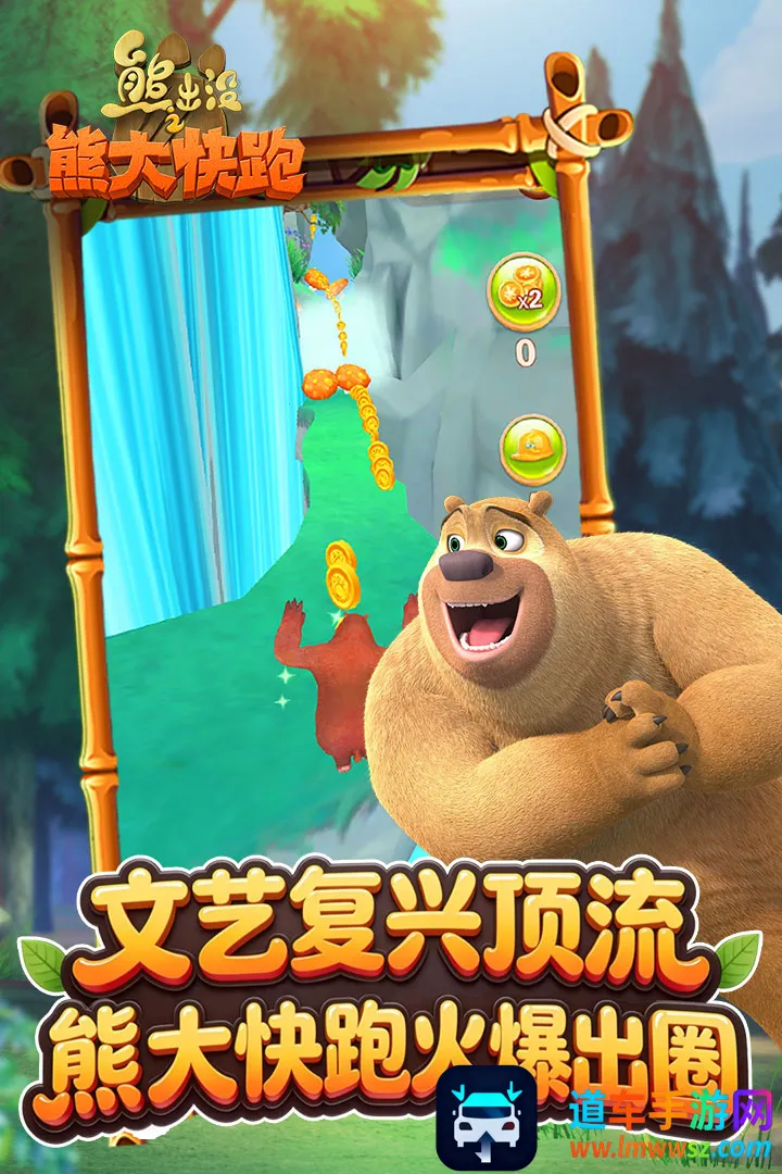 3、游戏采用竖版跑酷玩法,玩家需操纵熊大进行跑酷;