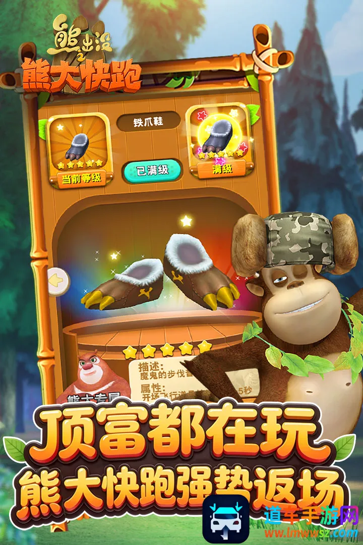 熊出没快跑2018钻石版是经典单机跑酷游戏,无需联网。能选熊出没角色,有全新地图玩法。风格绿意盎然,角色细节精致,关卡优化,还有萌宠、换装等多样玩法,以及丰富角色和特色赛道。