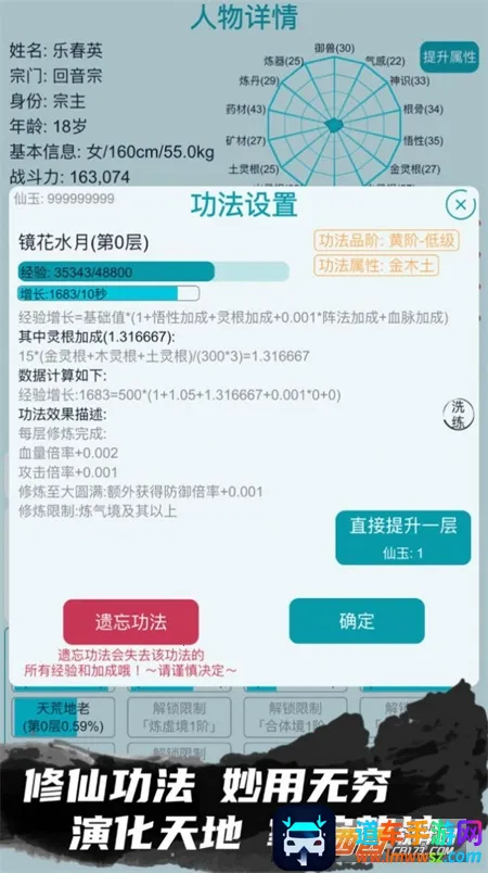 1、独特修仙成长路:玩家从初入修仙界的凡人起步,历经重重挑战,逐步修炼成仙踏上巅峰。可自定义角色外貌、性格与背景,开启专属修仙之旅。