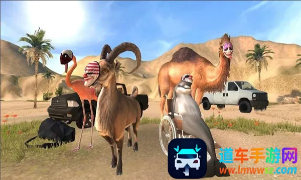 1. 丰富多样的山羊角色:游戏中有多只特色鲜明的山羊等你解锁,比如飞翔的火烈鸟、能坐在轮椅上爬上任何表面的海豚、会吐痰的骆驼等,每只山羊都有独特玩法。