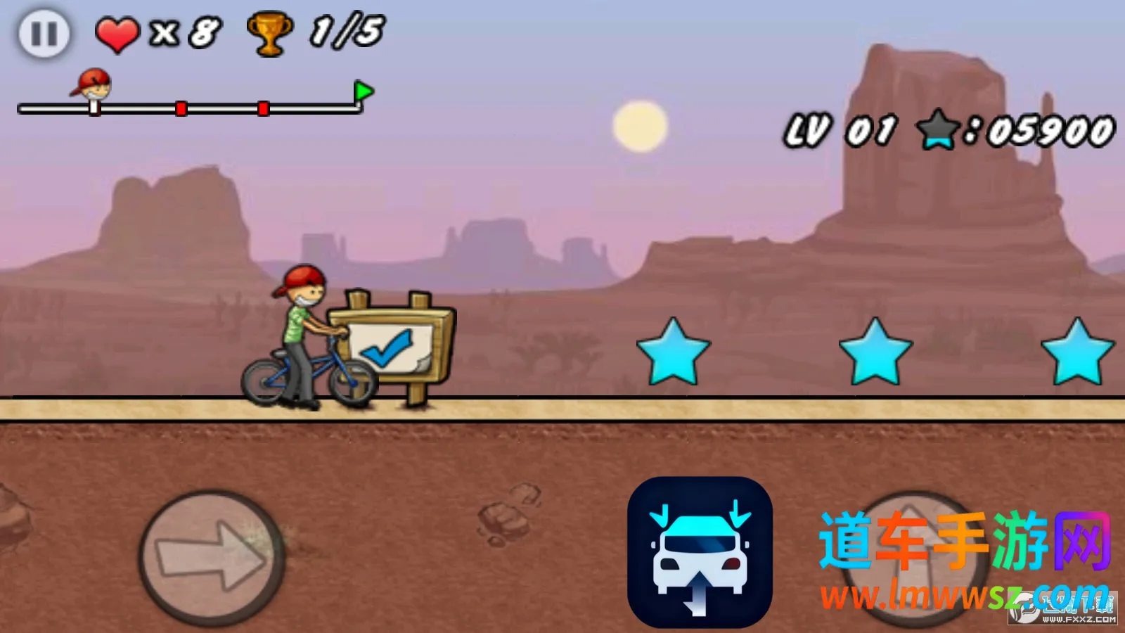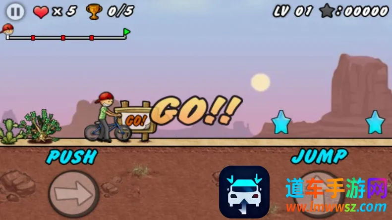操作很简单,点击屏幕右下角,一个负责加速,一个用于跳跃。加速时连续点击能更好地应对大跨度障碍。在空中还能表演各种酷炫技巧,增加积分。而且游戏简单易上手,适合各年龄段玩家。简单明了的地形贴图,让你一眼看清障碍物位置。三种不同地形,背景和障碍物各不相同,能带给你多样体验。另外,游戏在不同节点自动存档,方便你随时继续挑战。还等什么,快来体验单车男孩带来的刺激与乐趣吧!