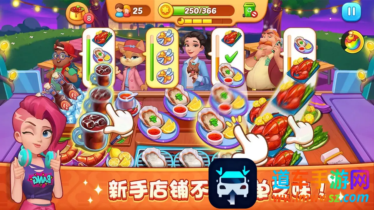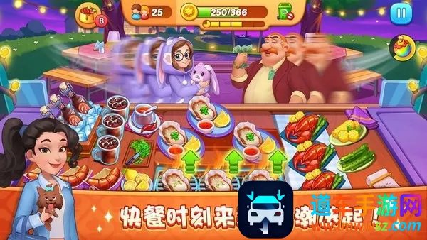 游戏玩法轻松,操作主要是点击式。正式烹饪前了解客人数量,选合适道具能帮通关。制作时注意火候,完成后点击递给顾客,饮品操作同理,连续上菜可提高得小费概率。每位顾客有耐心值,消耗完会流失顾客,升级烹饪工具能提高效率。