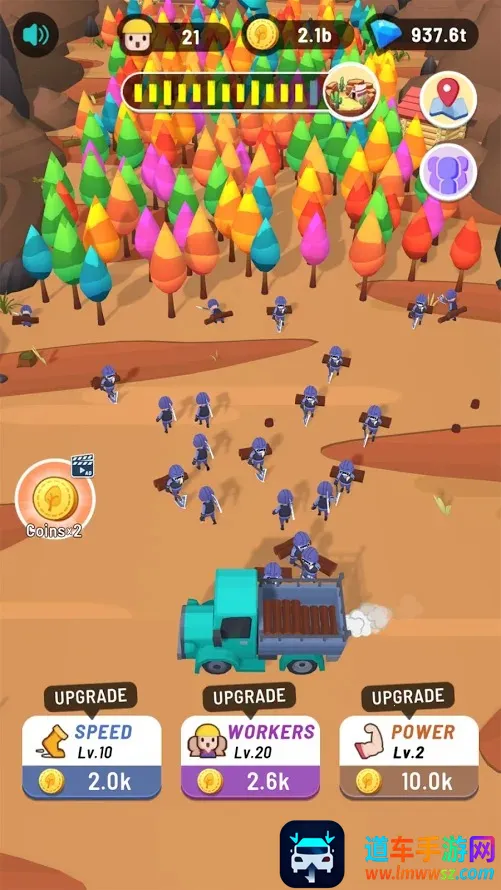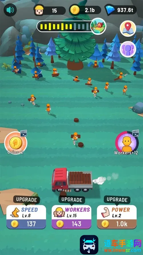自动砍树,轻松收益:无需长时间等待,工人会自动砍伐树木,即使离线也能持续收获木材,积累资源超轻松。