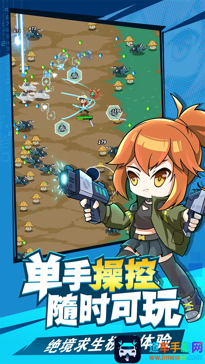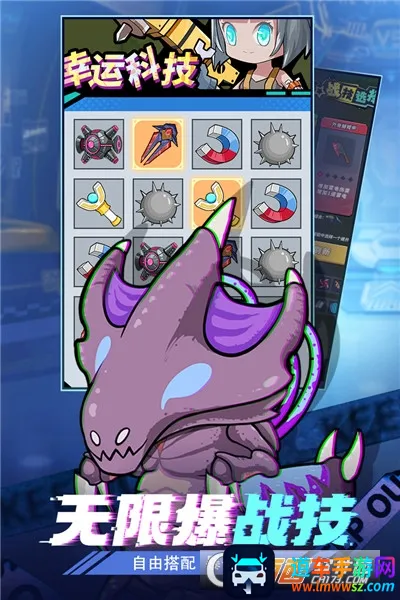 3. 融合割草与Roguelike元素,技能道具随机,带来新奇体验与刺激爽感,可享受单手割草快感。