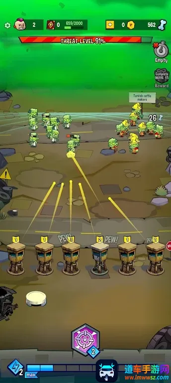 1.点击画面下方的武器放置区域,可以放置瞭望塔进行战斗。