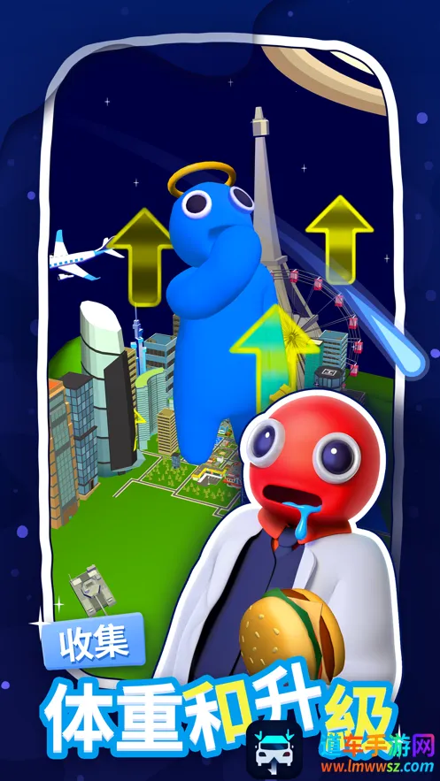 1. 独特玩法:操控彩虹小人在城市冒险,吞噬各种物体使体型成长,还能赚钱升级加快吞食速度,玩法轻松有趣且高度自由。