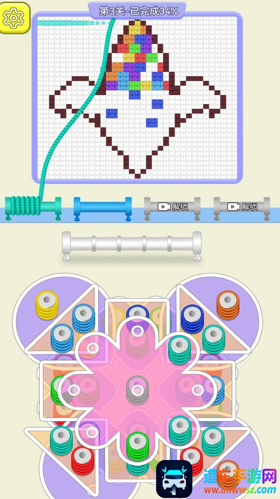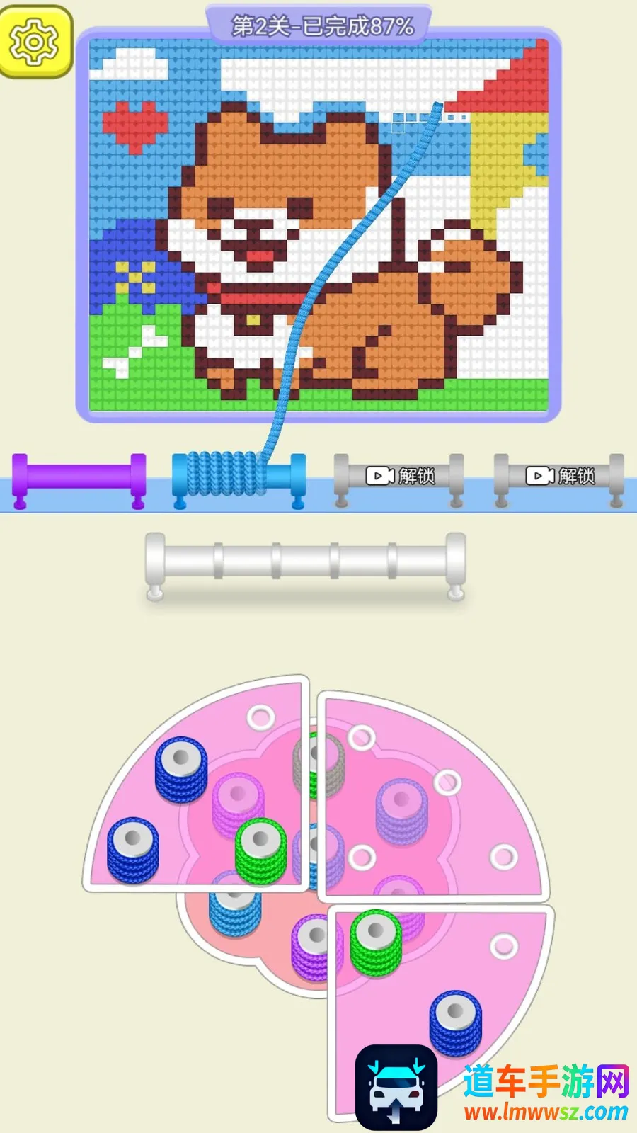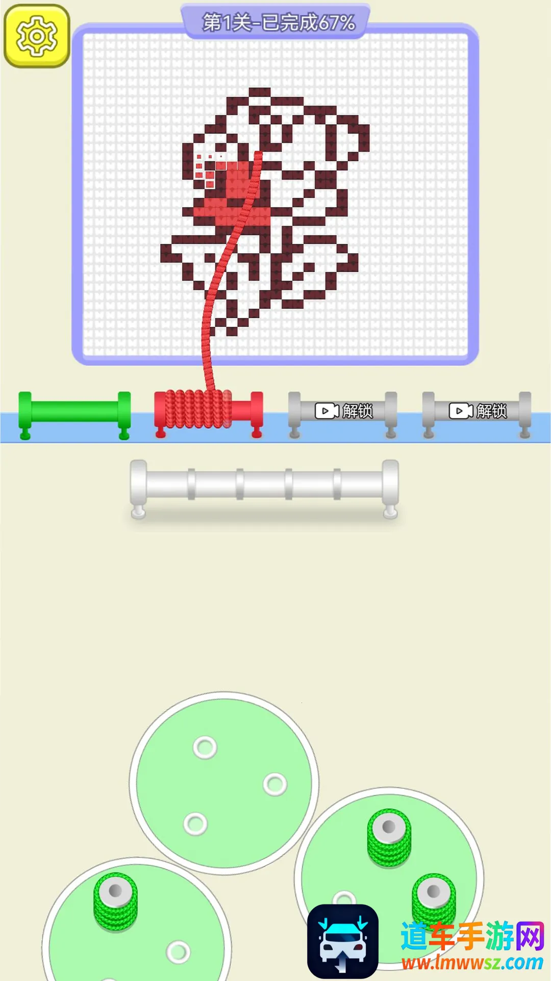 2.进入关卡后,首先观察线管的颜色,然后去消除相同颜色的毛线。