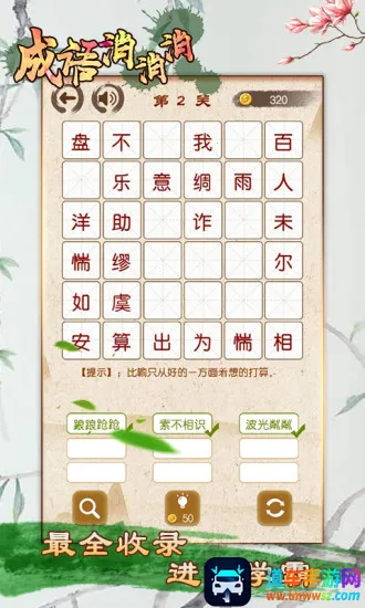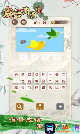 2. 规则简单:按顺序选出四字成语即可消除,简洁的界面搭配简单易上手的操作,让人快速融入游戏。