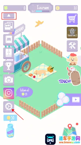 游戏设置中文很简单,进入游戏点击左边箭头图标,下拉点齿轮状设置按键,在新页面点击语言选中文即可。玩法方面,打开游戏点商店、升级,购买地毯安装在想放的位置。