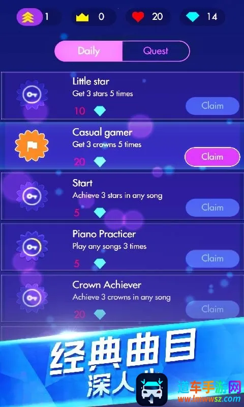钢琴独奏大师最新手机版是款音乐节奏休闲游戏。收录200首经典钢琴曲,涵盖多种风格。玩家按节奏点击滑落音符方块,有创意闯关等模式,画面精美,能让你感受指尖弹奏乐趣,展现音乐天赋,解锁更多曲目礼物。