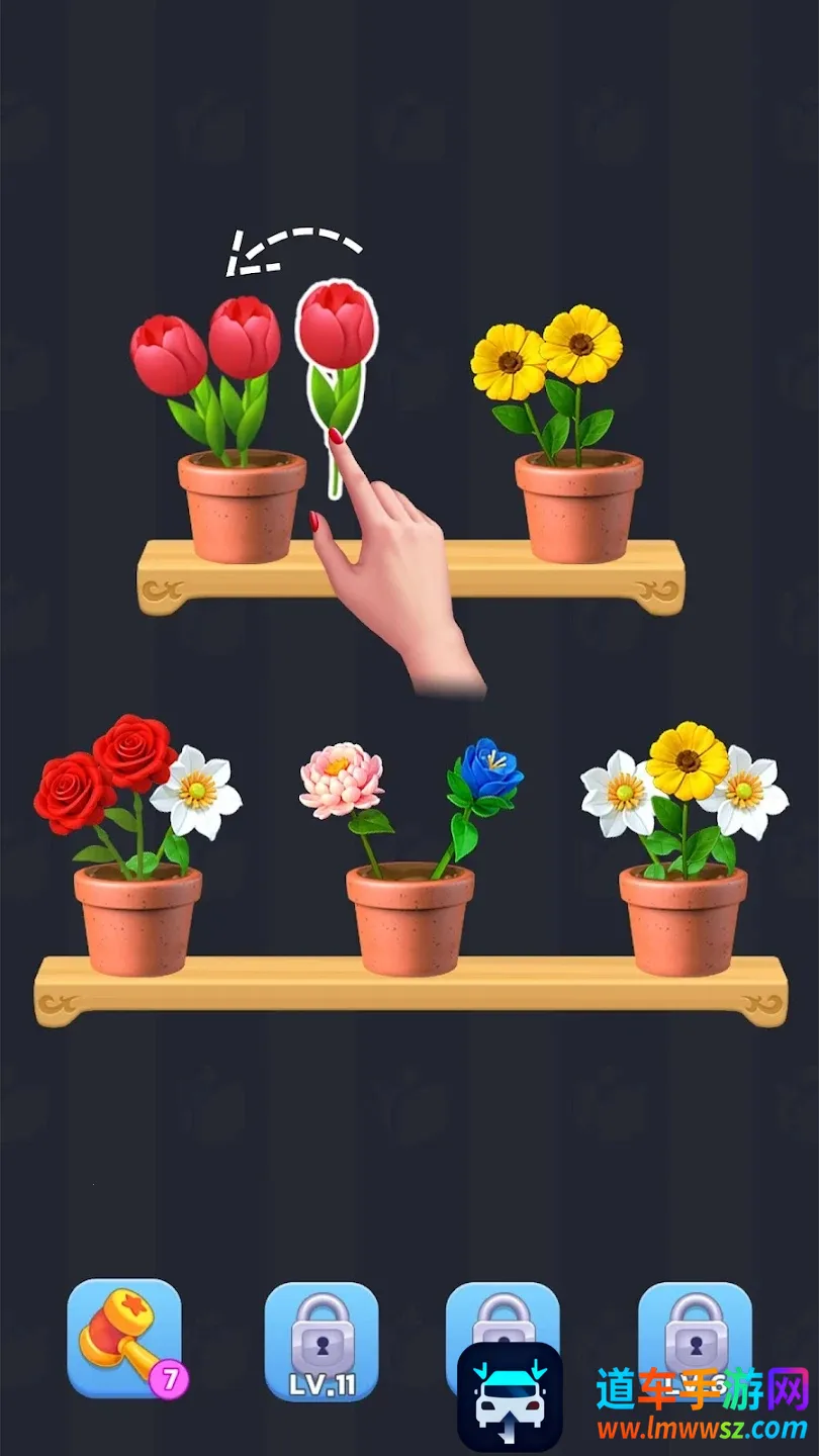 插花消消乐是一款以花卉艺术为主题的创新消除手游。它将经典三消玩法与花艺创作巧妙融合,带来清新治愈体验。其画面精致,关卡设计富有挑战,视听效果舒缓,全球下载超百万次,是放松减压与脑力训练的理想之选。从基础单色花束到复杂多层插花,每个关卡模拟真实花艺场景。核心玩法是整理花束,按颜色分类移入对应花瓶,匹配三朵同色花朵合成更高级作品。游戏包含数百个关卡,难度循序渐进,道具系统丰富,视觉效果绚丽。花卉设计精美,关卡机制创新多变,还有动态难度调节系统。玩法简单易上手,单指滑动即可操作,但精通有一定难度。它把花艺知识融入玩法,成就系统完善,每日挑战模式独特且奖励丰厚,能让玩家在消除乐趣中感受花艺魅力。