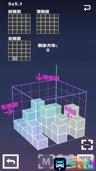 4. 拥有三视图视角,可从各个角度观察构建立方体,挑战更多难度关卡与模式。