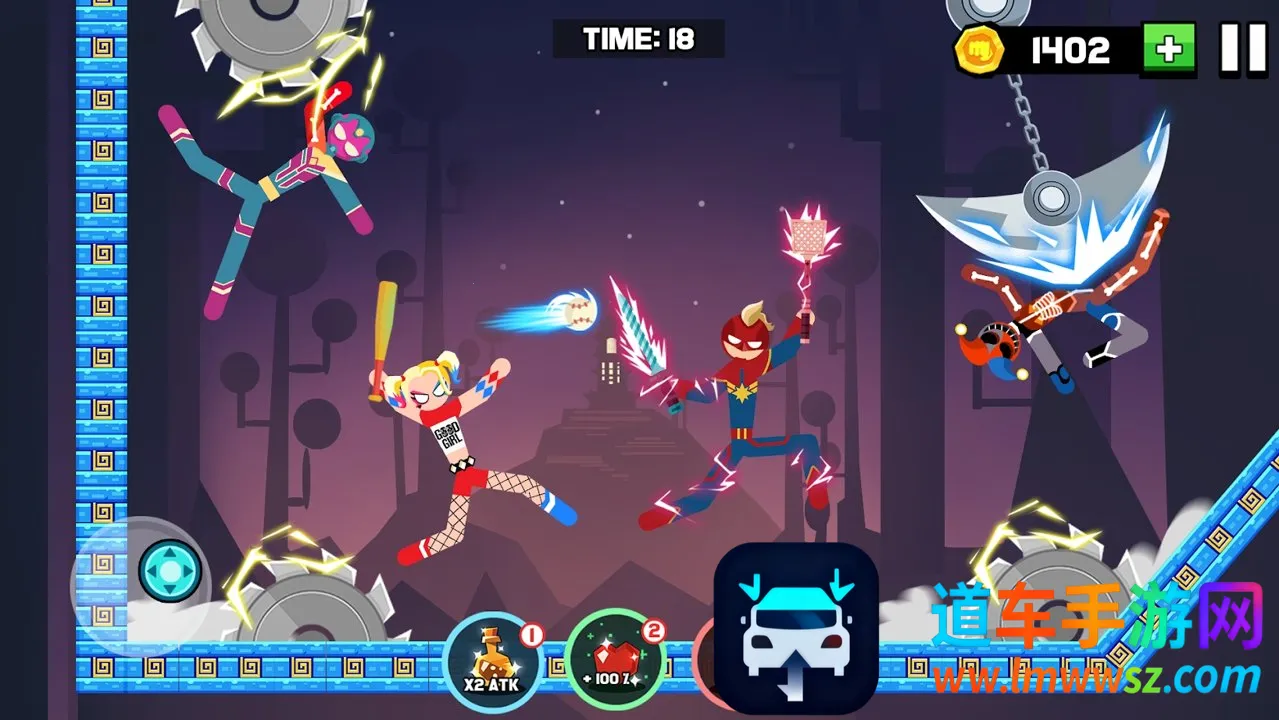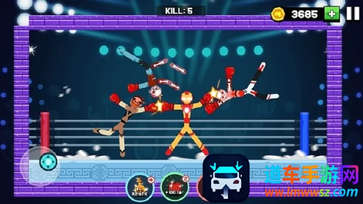 1. 战斗玩法多样,玩家操控火柴人在擂台激烈混战,战胜对手进入新区域,挑战不断。