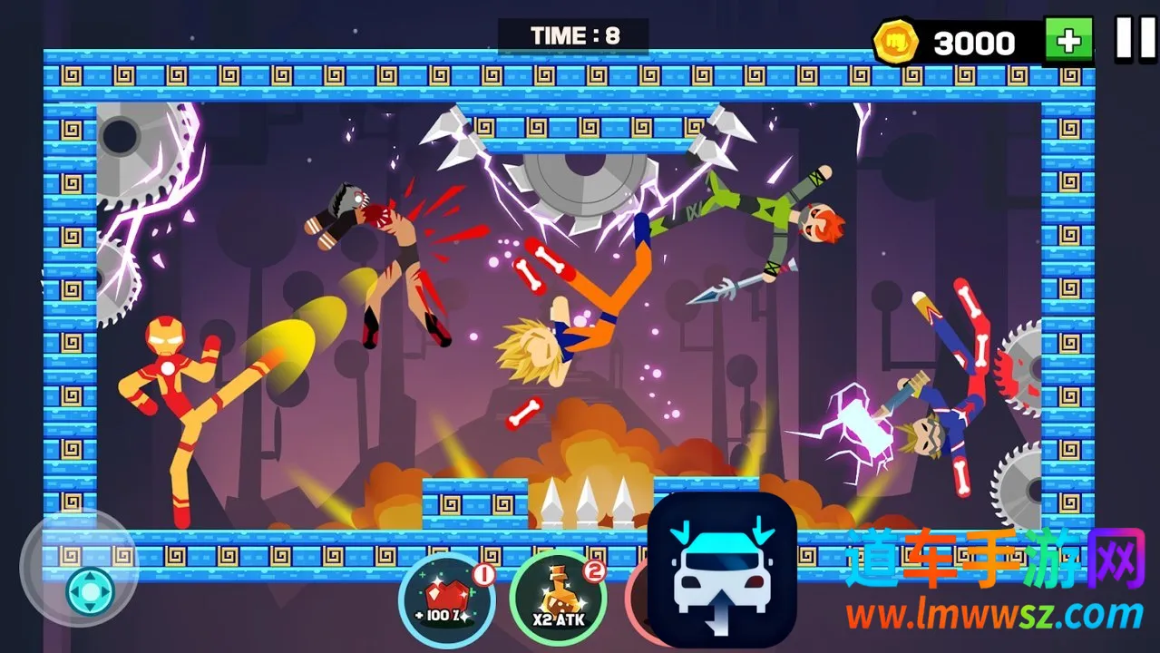 2. 场景元素丰富,战场潜伏对手,还有各种障碍物,能拾取或夺取武器强化火柴人。