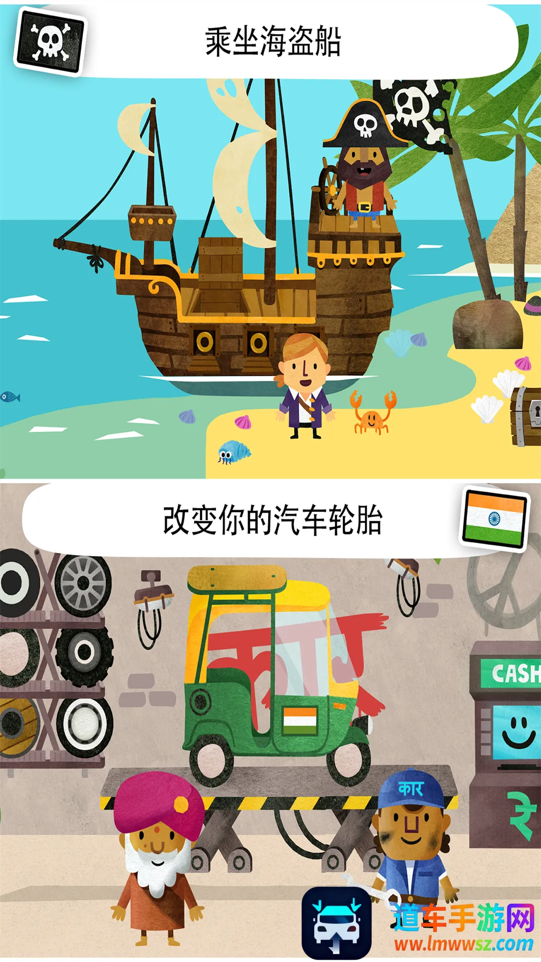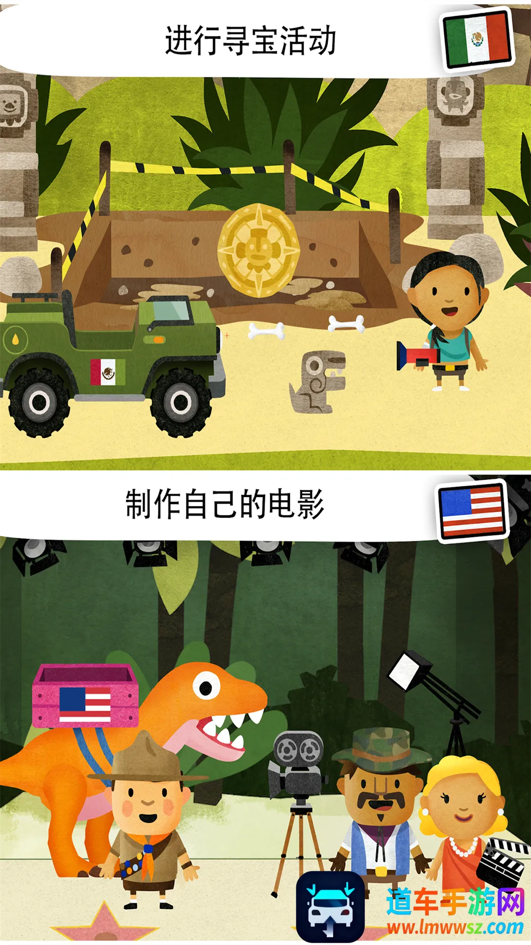 游戏中准备了多种船只,包括海盗船与渔船,可供乘坐航行。通过简单点击就能完成操作,让孩子轻松收获快乐。支持多点触控,游戏时长充足,带来持续乐趣。玩法新颖且富有教育意义,适合各年龄段体验。在欢乐互动中启发儿童认知,促进智力发展。带领孩子在墨西哥驾驶马匹、吉普车或皮卡穿越丛林,乘坐热气球掠过仙人掌沙漠,也可操控巨型机械骨架漫步城市。照料丛林动物,亲手制作巧克力与玉米饼,绘制壁画或体验摔跤竞技,这里充满多样化的惊奇体验。在法国,孩子们可坐在塞纳河畔咖啡厅仰望埃菲尔铁塔的夜色,也能扮演警察与强盗展开追逐,动用直升机、警艇和警车完成趣味任务。在美国,孩子们可在主题公园乘坐摩天轮,在电影工场重温登月或侏罗纪公园场景,与巨型猿猴互动,探访学校与唱片店,饿了就去汉堡店或热狗摊,还能到港口操作起重机装卸货物。在印度,孩子们可以采摘热带水果并榨成果汁,在汽车工坊更换轮胎,骑乘大象或尝试操作机器人技术,这里呈现着传统与现代的鲜明对比。