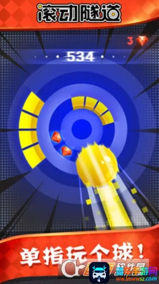 滚动隧道2026官方最新版是一款休闲躲避游戏。玩家控制小球穿越重重机关,躲避障碍物,收集道具获特殊能力。游戏画风清新简约,操作简单,重力感应玩法独特,十分考验手速与反应,快来体验。