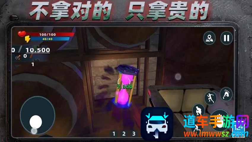 4、物品收集:所遇到的物品有具体价格,可收集贵重物品,物品较多时可扔掉低价物品以便将贵重物品运到基地,在挑战过程中逐步查找物品具体位置还有更多收集条件。