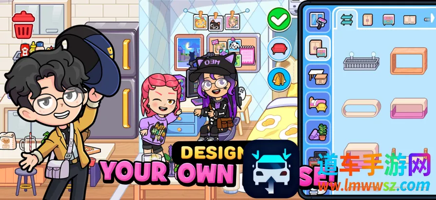 2. 拥有丰富家具、墙纸和装饰品,能自由布置房间,建造如星空卧室、恐龙游戏室等梦想家园,创意无限。