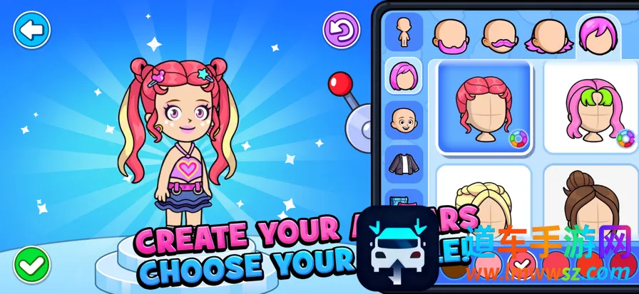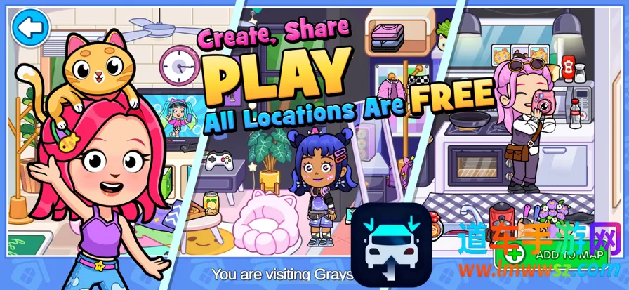 1. 开放式小镇场景,可自由进入面包店、医院、购物中心及社区公园等,无需解锁或完成任务。