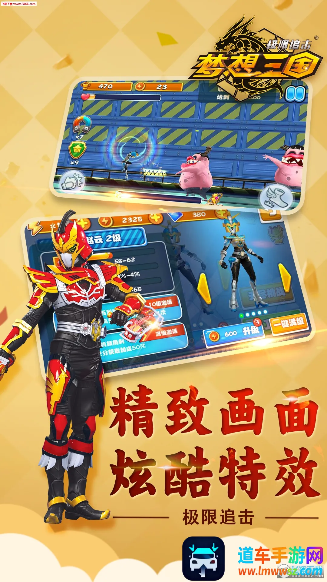 梦想三国极限追击是基于梦想三国 IP 正版授权的 3D 横版动作冒险跑酷游戏。玩家化身三国英雄,在关卡中跳跃、消灭怪物、获取金币,提升属性。游戏场景清新,结合跑酷与格斗,有酷炫特效与原声音乐。