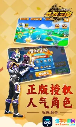 1. 正版授权开发:游戏基于梦想三国IP正版授权,带你进入原汁原味的三国世界。