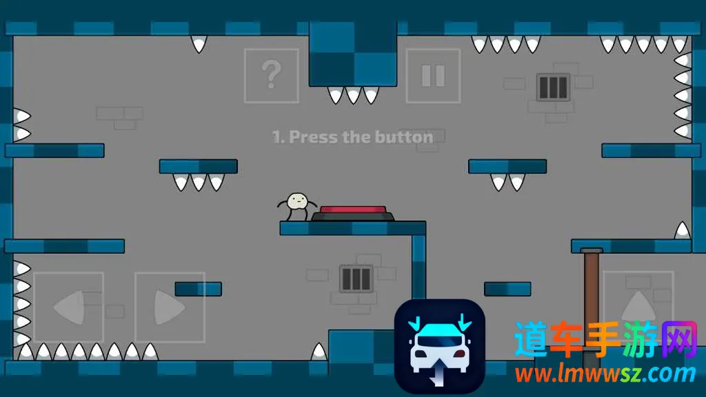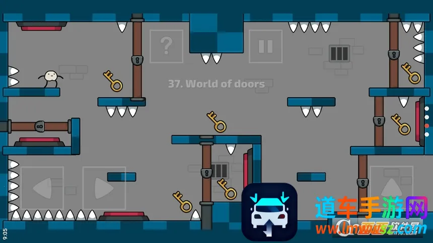 场景充满趣味,身处房间,周边有尖刺、平台、按钮和门等元素。