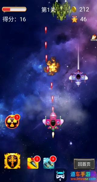 3. 打击地面防御单位降低躲避压力,针对不同目标选炸弹类型,升级战机优先强化投弹精准度与飞行速度。