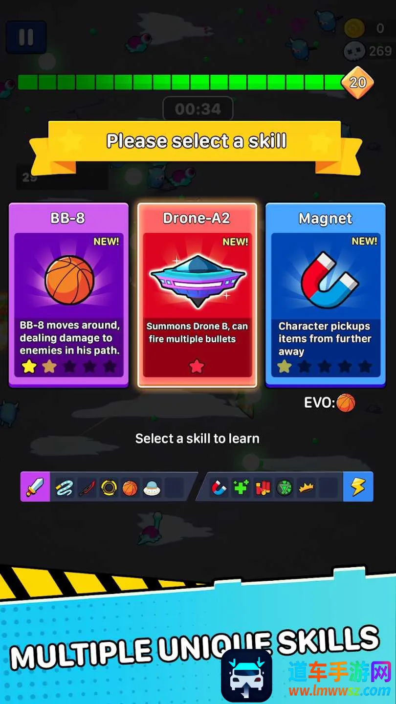 4. 独特技能系统:游戏提供30多种技能供玩家使用并可升级到最大值,收集并巧妙运用技能,能轻松克服游戏挑战。
