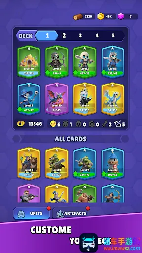1. 丰富卡牌收集:拥有普通、稀有、史诗、传奇四种级别的卡牌,且每种又分人类、兽人、不死族、机器四种类别,可自由搭配组合,组建最强军团。
