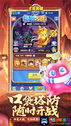 随机冲突土豆英雄是融合塔防卡牌合成等玩法的手游,有Q版萌系风格。含多种模式,无尽冒险等特色丰富。有超百位英雄,多种流派阵容,新手易上手,高手有深度,新赛季新玩法不断更新。