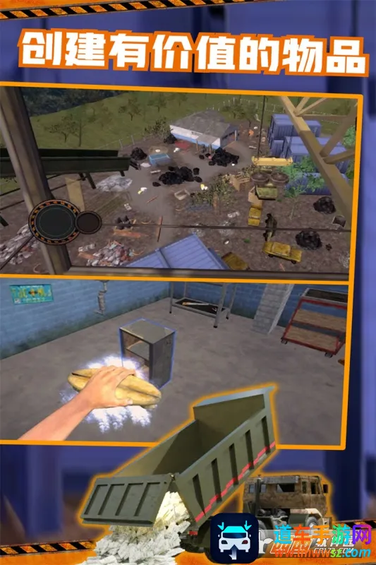 1、真实场景还原:采用写实风格3D引擎打造,锈迹斑斑的报废车辆、散落各处的家电残骸、堆成小山的废旧金属与塑料,所有元素都高度还原真实废料处理现场,让你仿佛置身真实垃圾场。