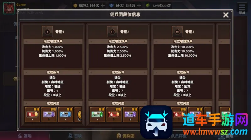 2. 丰富关卡体验成长乐趣:依战斗力选不同地区挑战,剧情模式能欣赏佣兵团长成长历程。