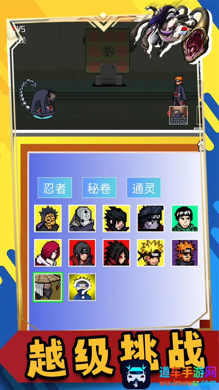 1. 人气角色深度设计:围绕旗木卡卡西精心打造,精准还原雷切、写轮眼等标志性忍术,技能与战斗动画在像素风格下极具表现力,完美呈现原作战斗美学。