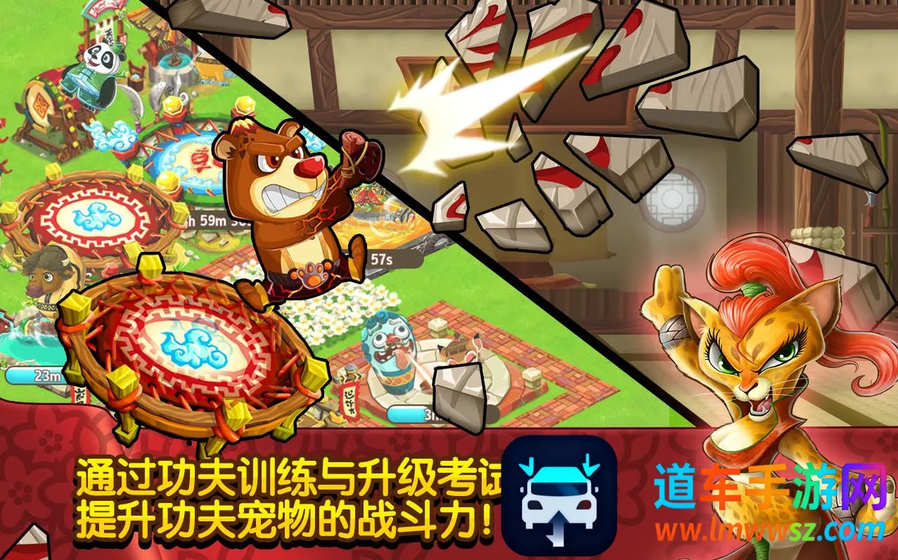 功夫宠物中文版是卡通风格的宠物养成模拟游戏。画面细致逼真,宠物有独特技能且能穿戴装备。通过闯关对战获金币道具升级宠物装备。含七大板块,有多种特色玩法,如奇特阵法、群宠战BOSS等,满足收集欲。