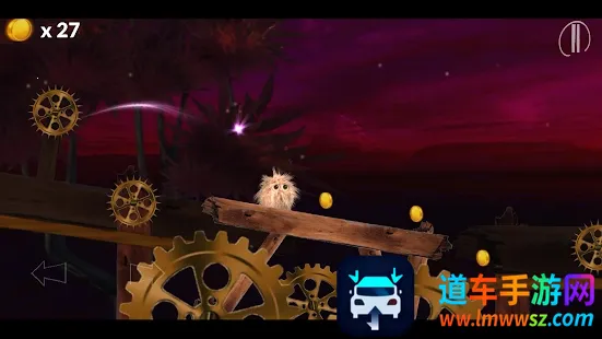 4.碰到断裂处,双击屏幕操控小毛球跳跃跨过,收集新金币,持续探索奇妙关卡呀