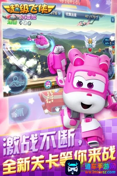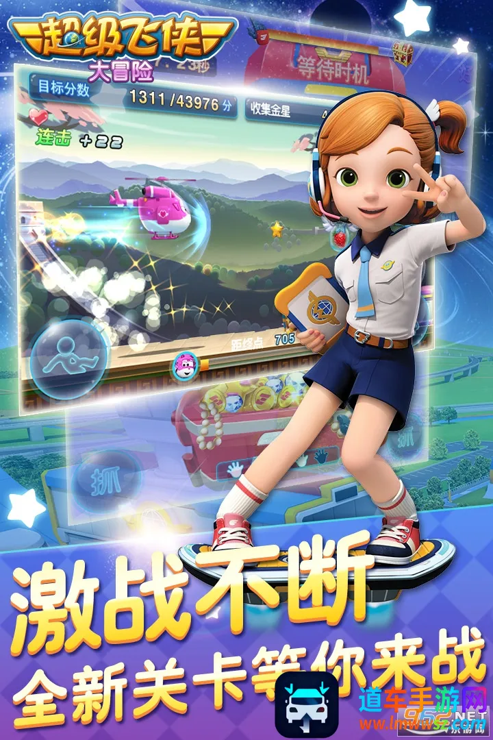 超级飞侠大冒险是获官方正版授权的动作休闲冒险手游。以卡通风格构建世界,有精美画面、简单操作、动感音乐。含丰富玩法,如闯关、探索等,还有多种特色,如道具奖励、多地图更新等,适合各年龄段玩家。