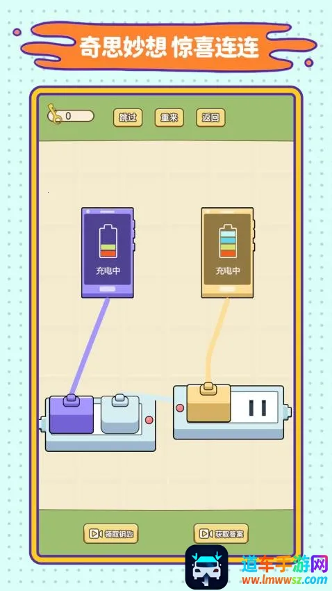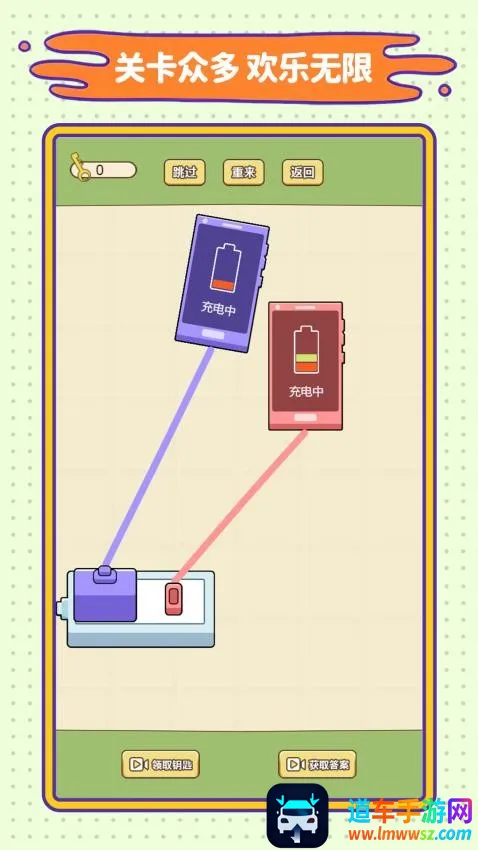 连线我巧棒是竞技闯关游戏,有轻松模式。玩家要在关卡中找连接优势、应对不同充电方式等。有各种充电解谜关卡,需找解谜技巧,根据颜色选连接位置,还能获道具、用提示,按攻略完成智救之旅。