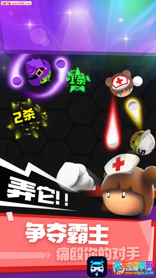 游戏的背景设定丰富有趣,有橡皮人拳手、随机地图场景、格斗竞技舞台、粉丝文化氛围和角色成长背景等。游戏攻略简单易懂,玩家通过摇杆操控角色移动、收集能量、寻找敌人攻击,努力成为排行榜第一。