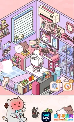 3、温馨场景超治愈:每个房间以贴纸为主题,有可爱猫咪和吸睛装饰品,随着贴纸粘贴,房间装饰项目逐渐完成,带来治愈的满足感。