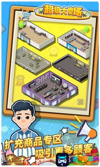 超级大卖场app是一款超有趣的模拟经营游戏。在游戏里,你能体验从经营小型超市起步,一步步打造商业帝国的快感。这里商品种类丰富,有果蔬、鱼肉、香水、电子产品等专区。顾客会自动进店购物、结账,你只需轻点专区就能升级,提高净利润。升级专区后,建设更多停车位,还能投入广告吸引顾客,增加营业额。游戏采用竖屏页面,单指操作轻松简便。每隔一段时间更改卖场环境,在入口放导购牌,节日还有特别装扮,给顾客全新购物体验。v1.0.4版本进行了性能卡顿优化并修复已知bug。如果你喜欢休闲点击类游戏,想体验经营超市的乐趣,那就快来下载超级大卖场app,在这里制定管理决策,发展超市业务,建立属于自己的超市帝国吧!