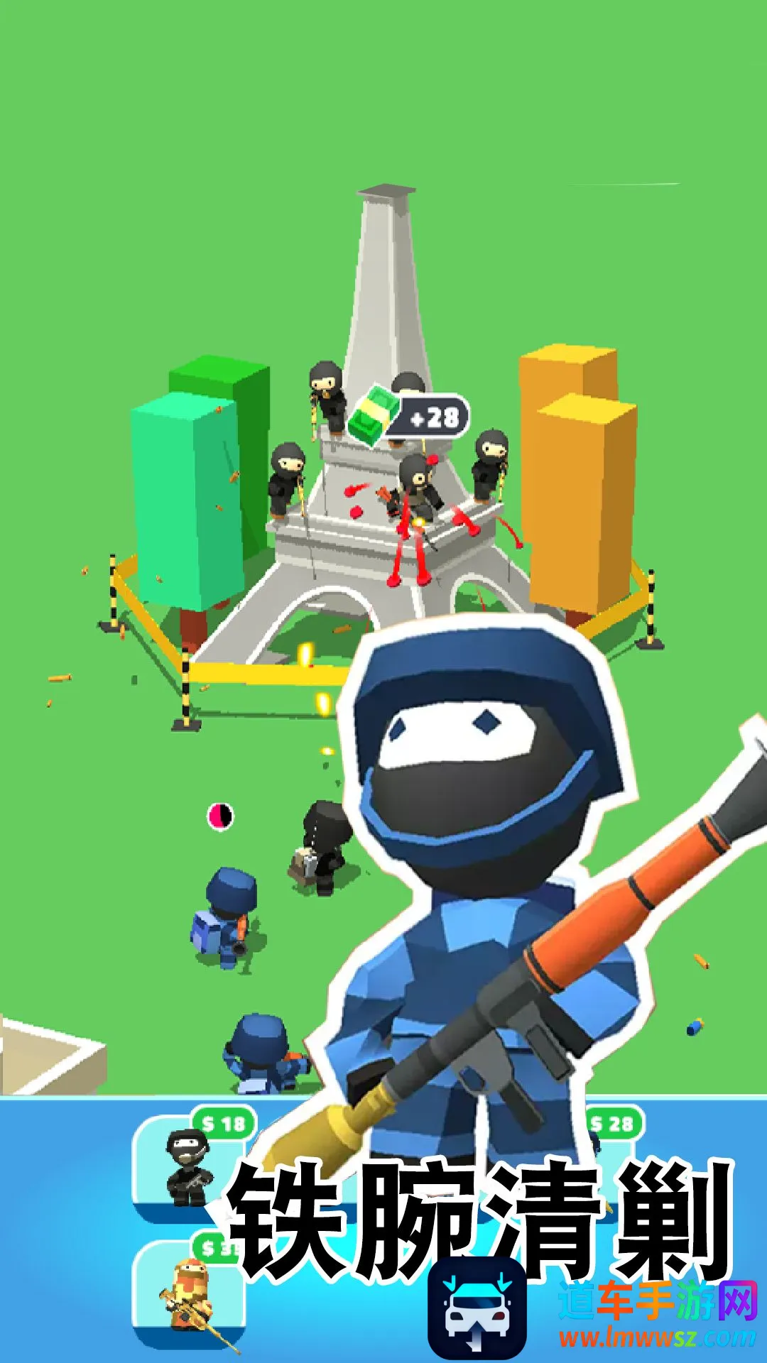 这款游戏的特色十分鲜明。世界各地标志性建筑构成的战场,带来独特的挑战与新鲜感。简约3D画面,线条勾勒出危机四伏的战场,细节之处皆是战术关键。而投掷技巧与兵力调配的结合,更是考验玩家的策略能力,精准命中敌人并合理布局兵力,才能在反恐作战中运筹帷幄,享受其中的乐趣,解锁全新武器与特色角色,体验不断升级的游戏体验。