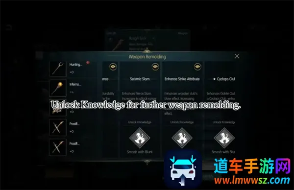以 Rough Stick 为例,如果你想获得 Seismic Slam,你需要先解锁 Knowledge: Smash with Blunt。