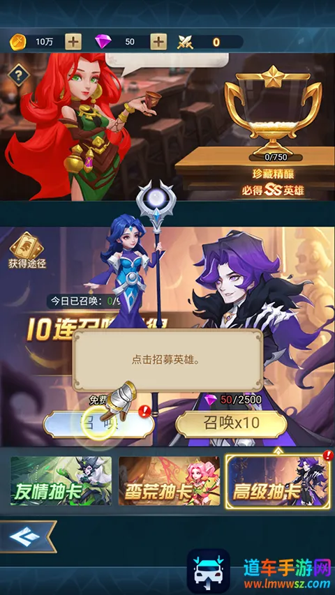 2、作为放置游戏其主流玩法自然是抽角色来搭配阵容。