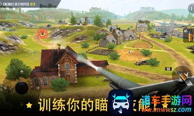玩法简单,下载进入游戏,点击MYGUNS进车库选喜欢的火炮,点击play开始,按左上角任务目标射击敌方坦克,点击右下角瞄准镜可精准瞄准,完成任务就能通关。
