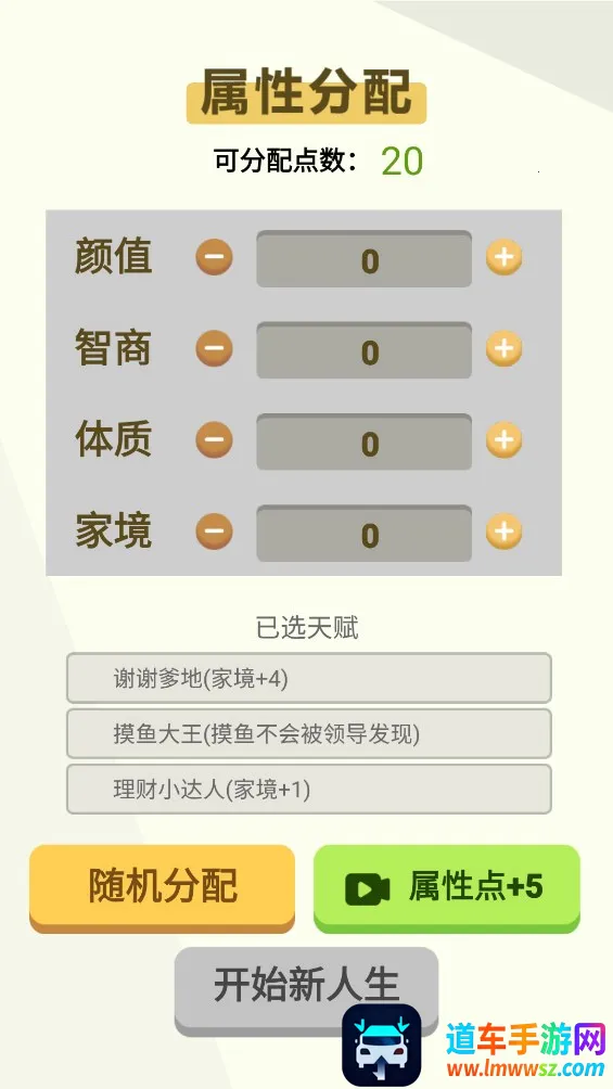 人生轨迹模拟器是一款超有趣的游戏,能让你体验别样人生。开局属性分配很关键,建议颜值6点、智商4点、体质6点、家境4点,有助于活到100岁。生娃要考虑经济和身体状况,选对时机。职业选择得留意属性要求,比如灵媒职业适合喜欢特殊体验的玩家。游戏中若遇卡顿,可点击成就剧情城镇系统继续。要是家庭成员啃老,安排去咖啡店打工能改善。赚钱也有门道,选喜欢的家人,弄个vip免视频讨好父母,父母好感多钱就多。大学选专业要慎重,租房可返回避免。相亲选红娘,看对方喜好送礼。四十岁后要孩子,一胎就行,独生子女可继承遗产。房子买了隔几年卖掉能增值。总之,这款游戏玩法独特,能让你尽情探索不同人生轨迹,快来试试吧!