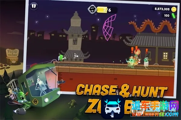 僵尸榨汁机中文破解版内置菜单,是一款融合跑酷追捕、模拟经营与恶搞喜剧元素的单机休闲手游。玩家扮演外星猎人抓捕僵尸榨果汁,有丰富武器道具、多样僵尸,支持离线运行,破解版可上线获取无限金币和钻石。