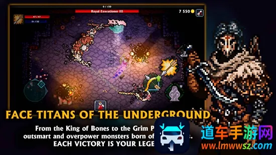 游戏亮点满满,采用无自动战斗的全手动操作,考验操作精度与反应。通关主线后解锁无限地牢模式,怪物随玩家等级动态强化。经典2D俯视角像素画风,结合暗黑美学。规则硬核,如只有清空楼层才能回血。