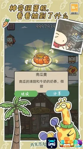 月兔历险记是款角色扮演游戏。月兔收到爷爷来信来到蘑菇村经营农场,完成任务获丰厚奖励。有多种谜题,采用卡通画风。可通过签到得扭蛋票扭蛋。游戏不断更新,有新场景、功能,还有丰富剧情玩法。